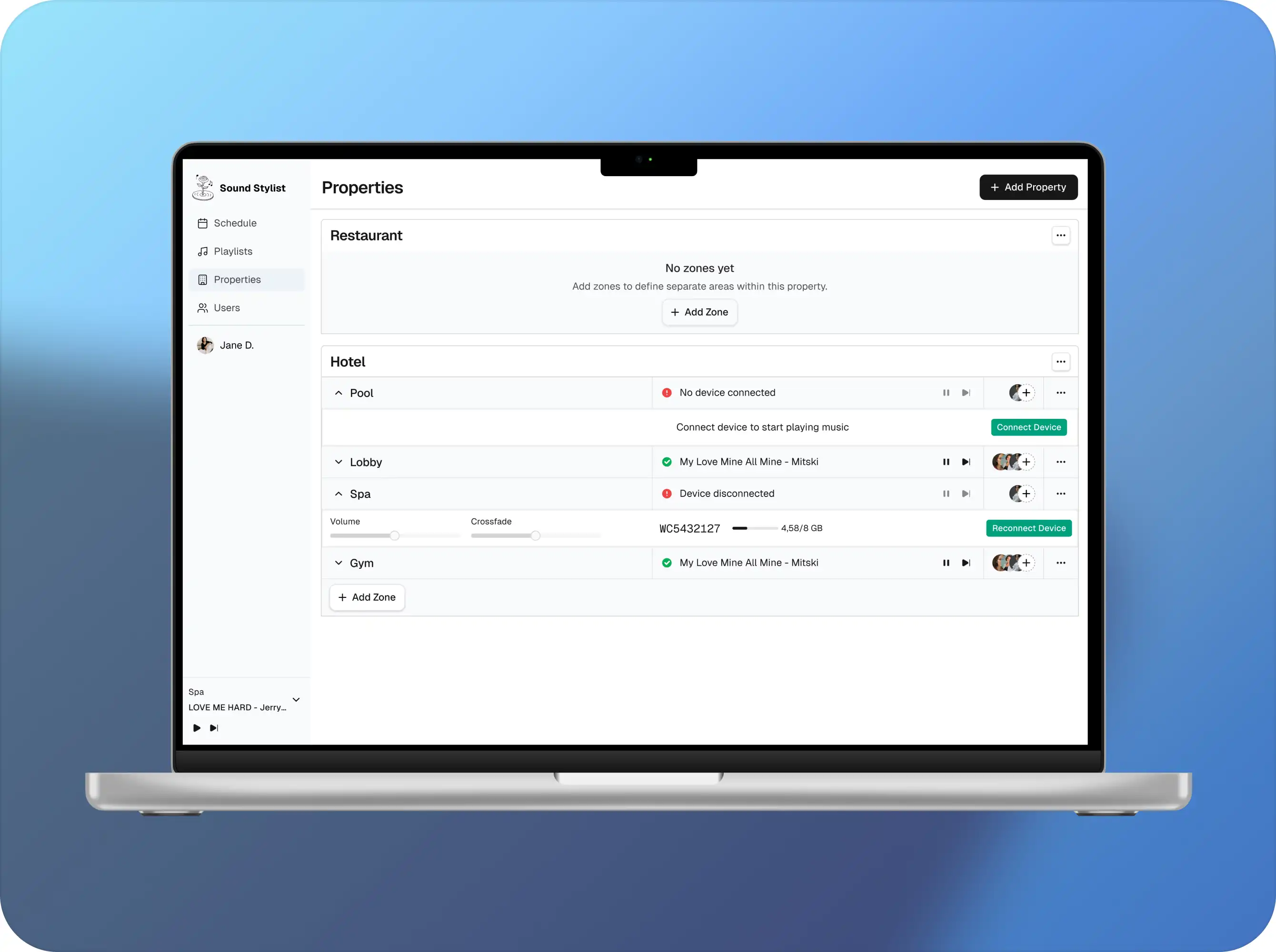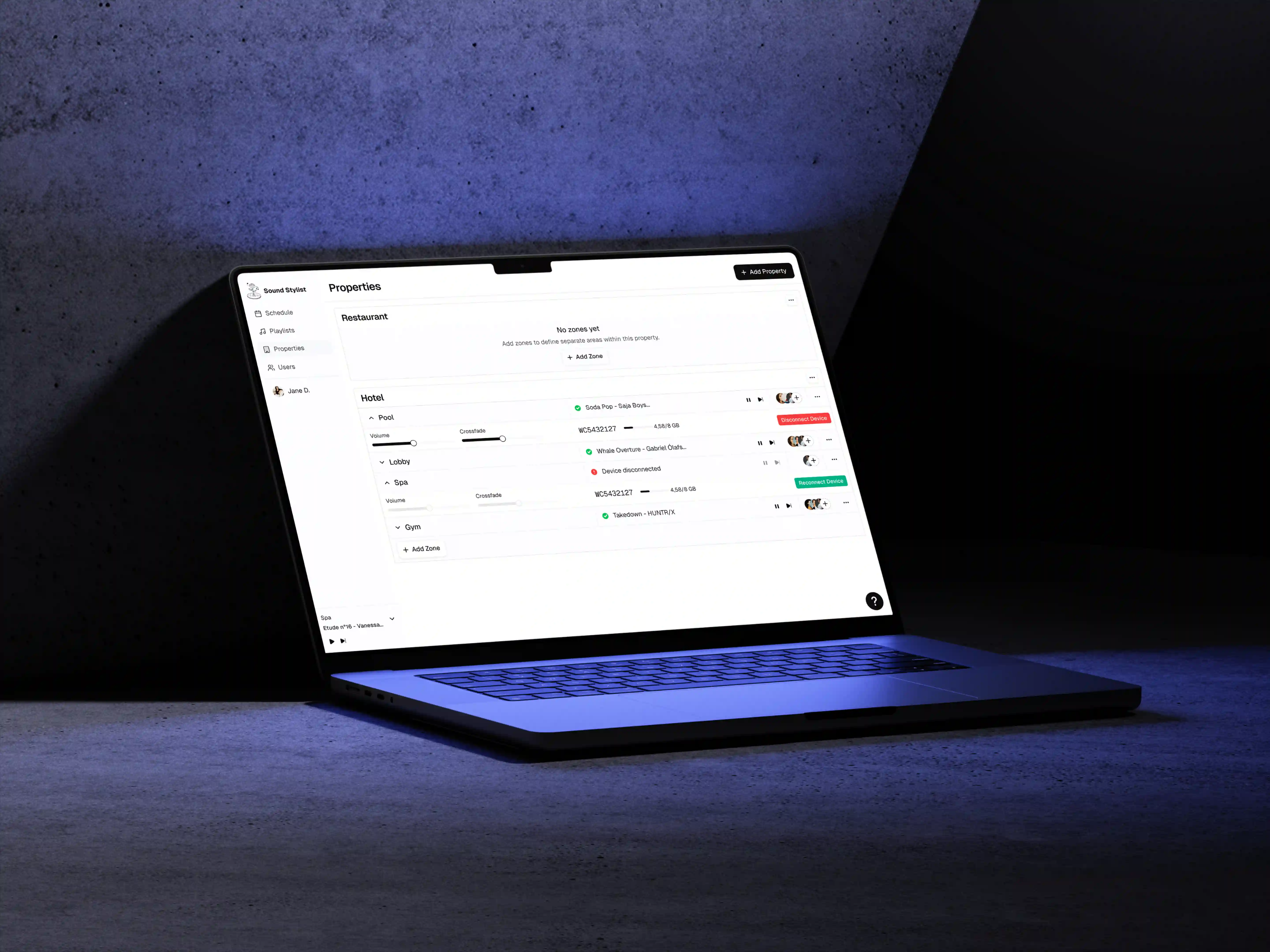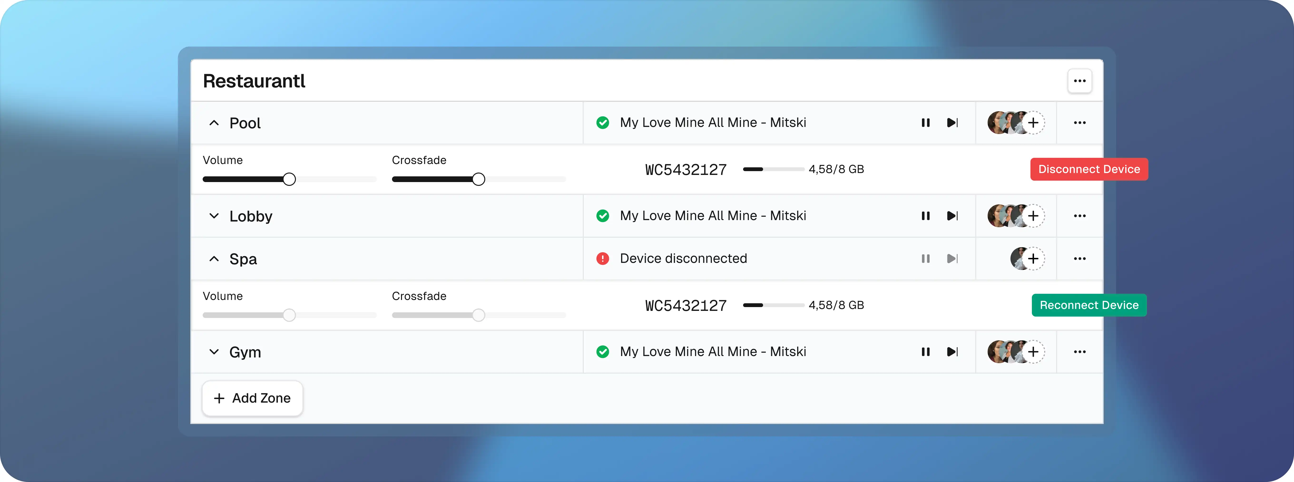 01/ Enable intuitive multi-zone music management, allowing venues to control different spaces from a single dashboard.