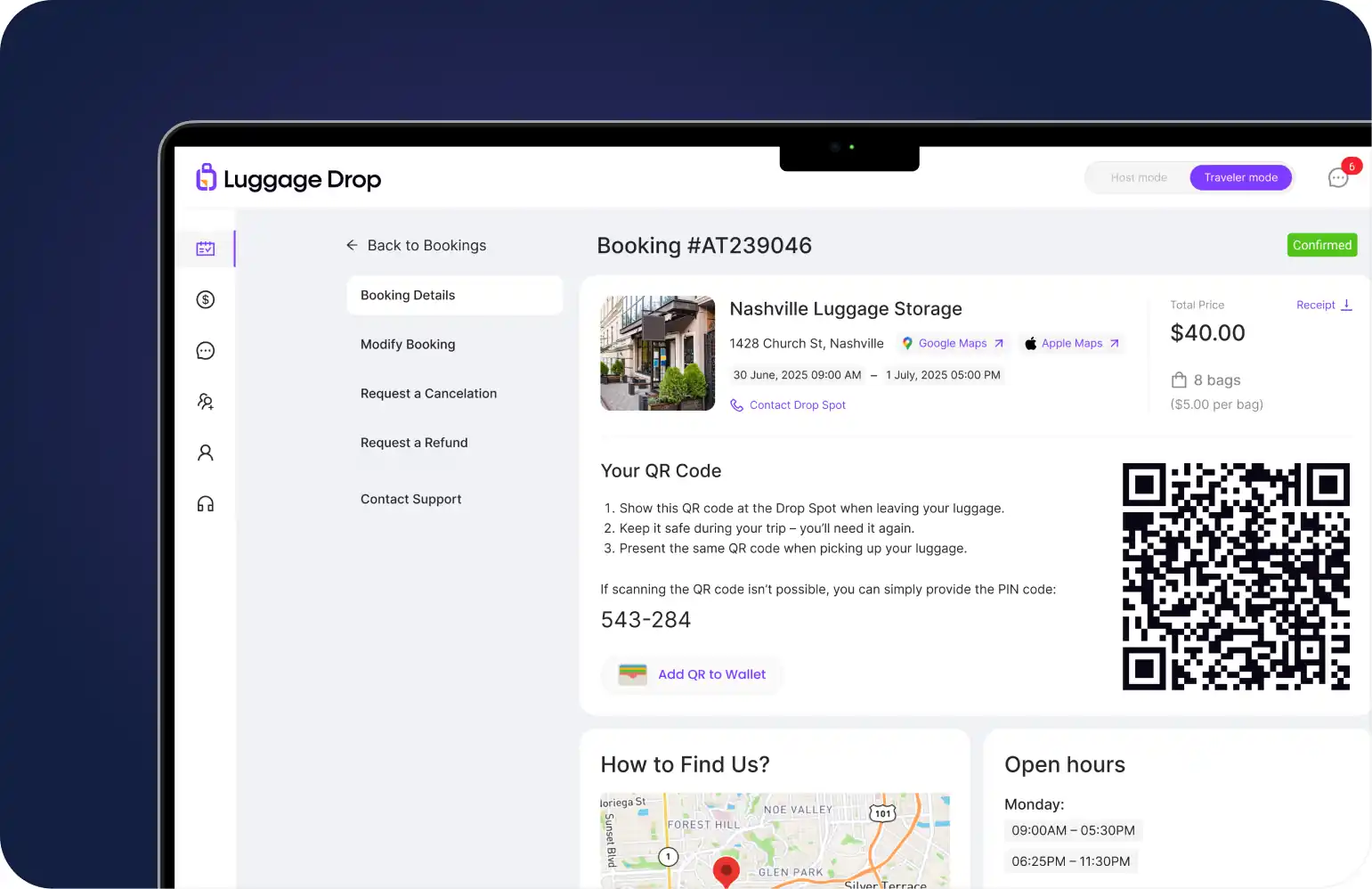 +48 500 132 858Luggage Drop is your travel freedom hack — a smart, hands-free way to explore the city. Travelers can quickly book nearby drop spots through an interactive map, while hosts easily manage listings, bookings, and earnings.